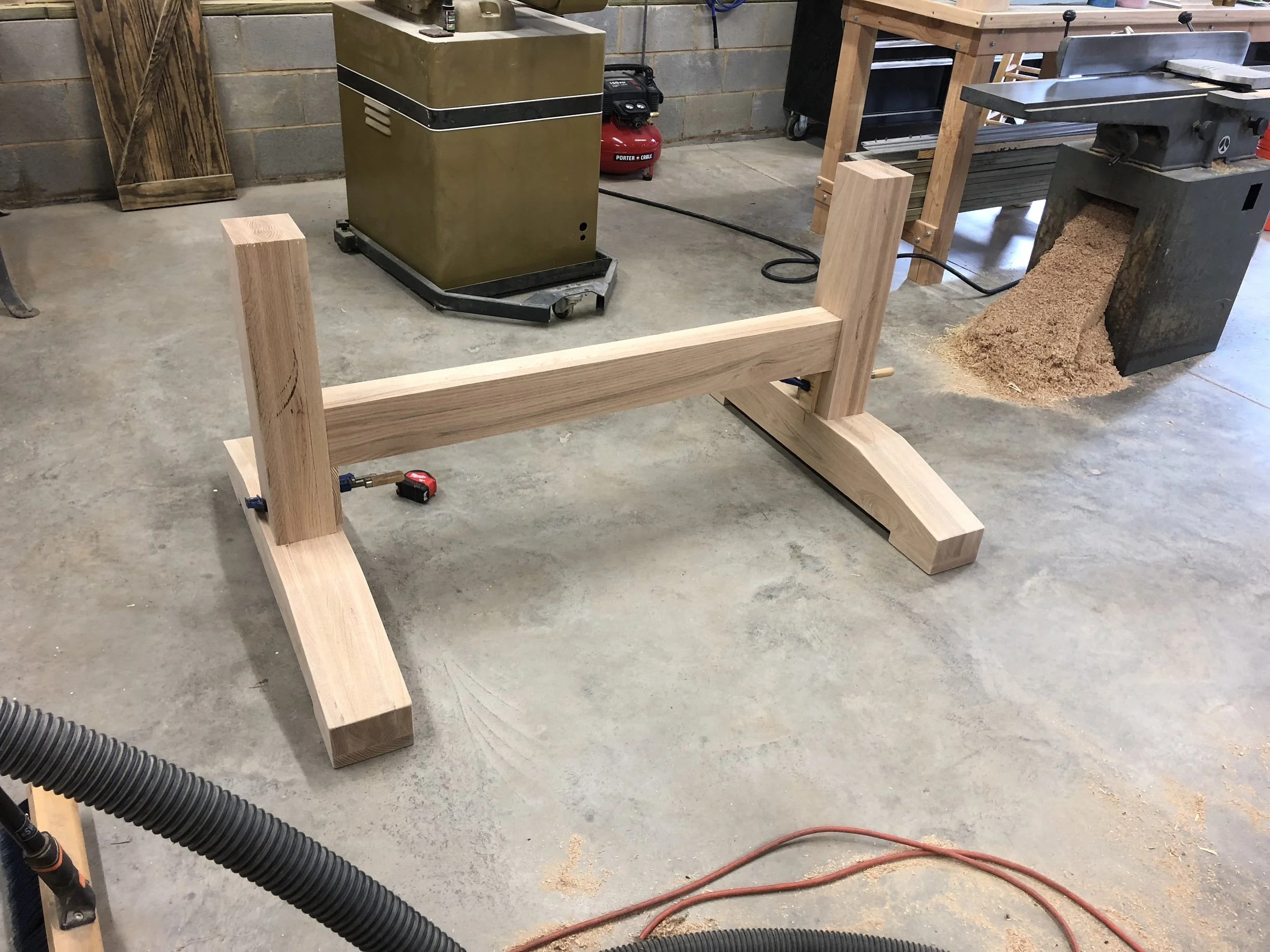 The Dunham table is a trestle design crafted from solid oak. It features large posts and beams cut with clean lines in mind. The top is carefully crafted to create a smooth, solid slab with mitered bread board ends.